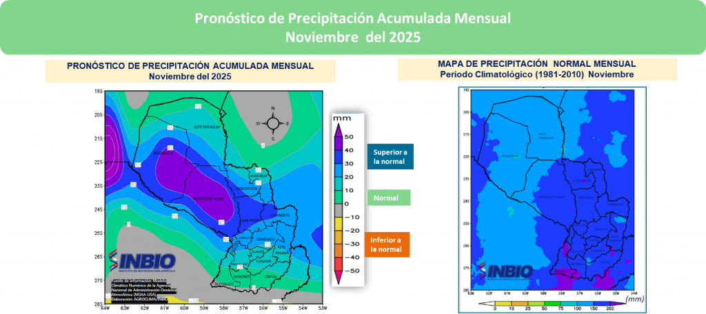 Estas condiciones contribuirían a mantener una adecuada disponibilidad hídrica en el perfil del suelo, para los cultivos de siembra temprana que, durante noviembre, ingresaran a etapas fenológicas de alta demanda hídrica, reduciendo el riesgo de estrés por déficit y promoviendo un desarrollo fisiológico óptimo.