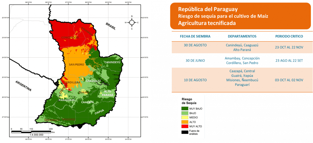 Se prevén acumulados por encima de lo habitual con rangos más elevados principalmente sobre el oeste y norte del país, abarcando zonas de Boquerón, Alto Paraguay y Presidente Hayes. En la Región Oriental, los valores tenderían a situarse dentro del rango normal a moderadamente superior, especialmente en áreas agrícolas de San Pedro, Caaguazú, Concepción, Canindeyú y Amambay.