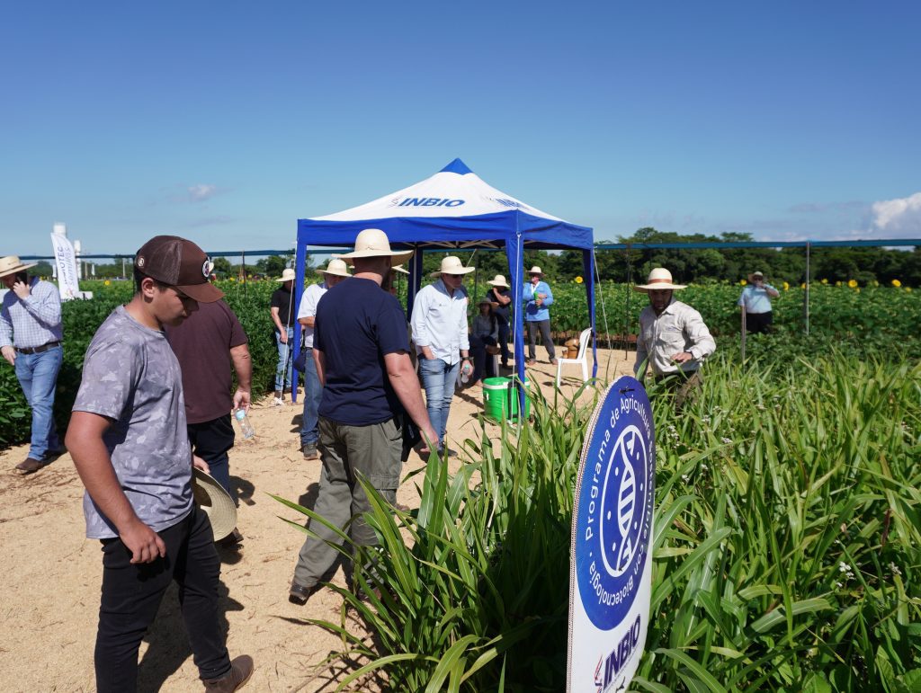 Con esto se abordó todas las líneas de acción que viene implementando el INBIO y así se dieron a conocer el avance en los trabajos. En cuanto a tecnologías en soja el INBIO está trabajando con la HB4 (de tolerancia a la sequía y al glufosinato de amonio); el 3G (tres genes de resistencia a la roya de la soja); Intacta; I2x y xtend; RR y convencional de modo a ofrecer un amplio abanico de productos.