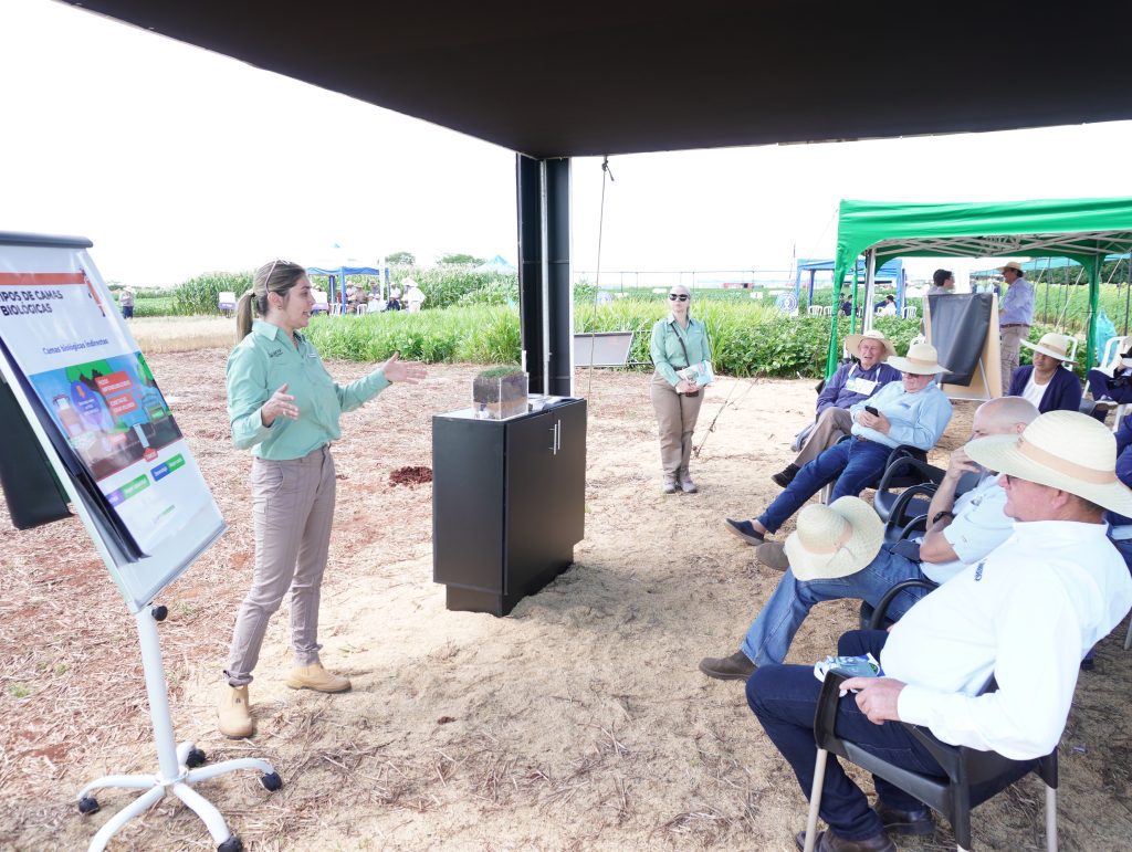 Durante la Jornada Tecnológica, también se tuvo la presentación de Cautivante quienes presentaron la limpieza de pulverizadoras y las recomendaciones para preparación de mezclas correctas de productos fitosanitarios, de modo a optimizar de la mejor forma la aplicación y mantener un caudal correcto en las maquinarias. Mientras que la Cámara de Fitosanitarios y Fertilizantes (CAFYF) presentaron el manejo seguro de fitosanitarios, con la utilización de equipos de protección, así como también la creación y utilización de las camas biológicas en diferentes fincas productivas con materiales que se pueden conseguir en diferentes puntos del país.