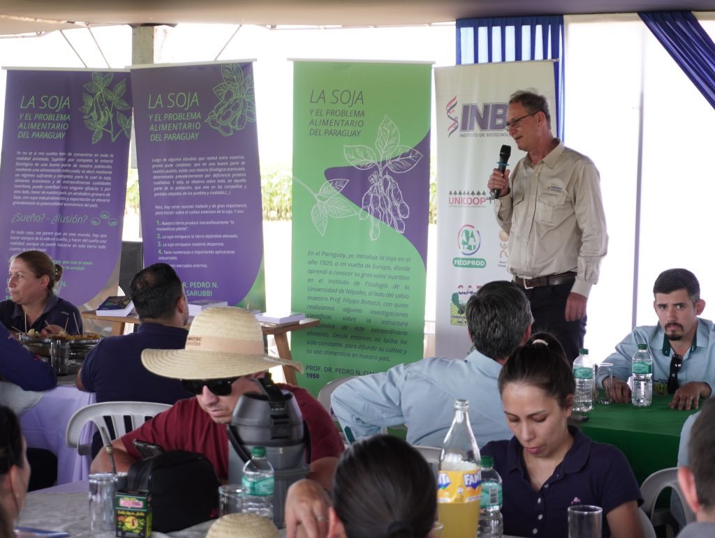 Tras la Jornada Tecnológica del INBIO, se realizó la presentación de la tercera redición del libro “La soja y el problema alimentario del Paraguay” escrito por el Profesor Dr Pedro Nicolás Ciancio Sarubbi, publicado en 1.950, reeditado en 1.974 y ahora 51 años después el INBIO realiza la tercera edición en homenaje al Dr Ciancio quien introdujo la soja en 1.920 y dedicó su vida a estudiarla desde diferentes enfoques y en especial la nutrición.